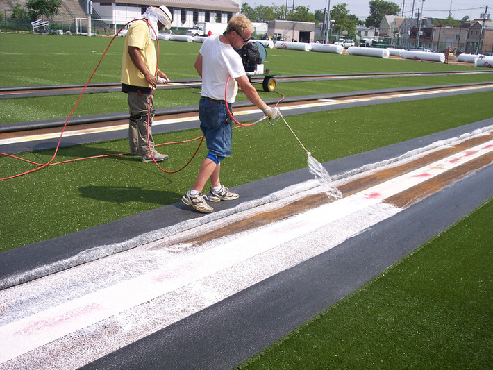Used for pre-fabrication and/or installation of synthetic turf athletic fields for field hockey, football, soccer, baseball, and other single- or multi-sport fields. Also used for areas around airport runways to reduce bird traffic; on playgrounds; golf courses; putting greens; tee-lines; golf mats; batting cages and halos; tennis courts; pre-fabricated urethane and rubber surfaces; pools; water slides; lounging and landscape areas; landfills; and on other athletic and recreational surfaces.